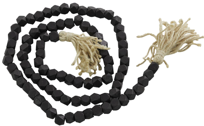 A warm and welcoming way to elevate the look of your tablespace and complement your existing decor. Give your surface space a finishing touch with these beautifully crafted decorative garland. Style the black small beads with tassel wrapped around a vase or draped across a tray to add texture to your decor. This item ships in 1 carton. Mango wood garland with tassel makes a great gift for any occasion. Due to the handmade nature of this item, no two will be alike, there will be slight differences in shape, size, and color. Suitable for indoor use only. This item ships fully assembled in one piece.