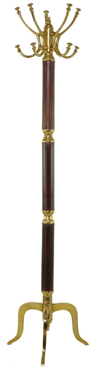 Designed with timeless sophistication, rich old-world textures and warm hues come together for a refined classic taste of luxury. Tall gold and brown coat rack is crafted with solid wood and aluminum material. This freestanding coat rack highlights metallic gold patterned finish with natural wood brown accent details.Read More
