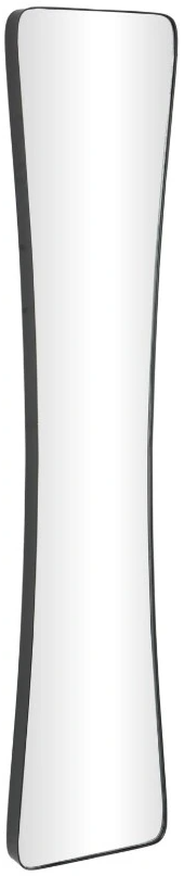 Rectangular hanging wall mirror features a shiny black finish that adds a touch of elegance to any space. This iron wall mirror boasts a tall, abstract design that makes it a standout piece.