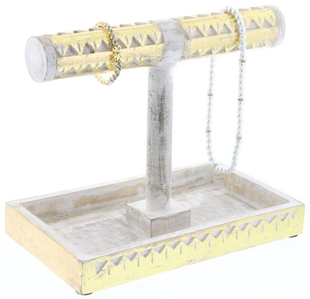 Designed with a natural theme for a calming and relaxing feeling. Crafted of solid mango wood for durable structure. Features a white patina finish. Classy jewelry holder adds personality to your tables and shelves.Read More
