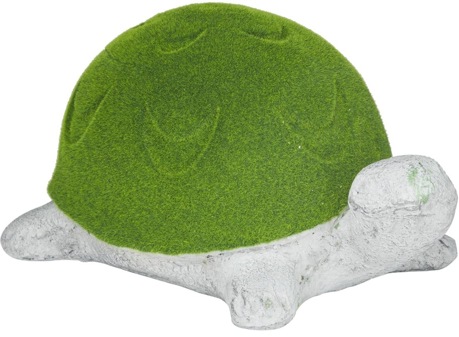 Garden decor is crafted with solid MGO for a chic and durable design. Eclectic garden decor carries a textured green and brushed light gray finish Garden animal sculpture features vibrant grass inspired shell with a flat base in a turtle silhouette for a secure and balanced display.