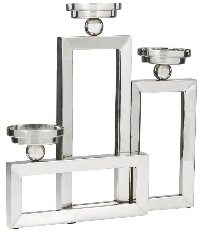 Highlighting a simple yet elegant design, this geometric candelabra showcases various sized rectangles with open frames, and rounded balls holding the candle plates