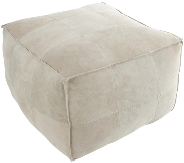 Gray square pouf features a large square shape with a unique patchwork design that adds texture and visual interest to the piece. Wipe clean with a dry cloth. Natural leather ottoman is constructed with strong stitching and reinforced seams for lasting quality, and filled with cotton for comfortability.Read More
