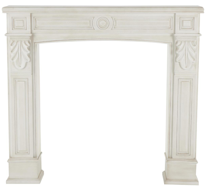 Rectangle fireplace mantle features a matte white finish that makes it a perfect addition to any space. This wood mantle for fireplaces features intricate leaf accents that enhance its traditional look.