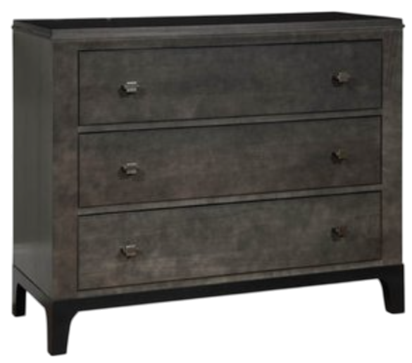 Durham Furniture Customizable Front Street bachelors chest offers three soft-close drawers for convenient bedside storage. Crafted with maple wood and a hand-applied finish, it combines elegance with durability. Its clean lines and refined hardware create a timeless look, while customizable finishes let you tailor it perfectly to your bedroom décor.Read More