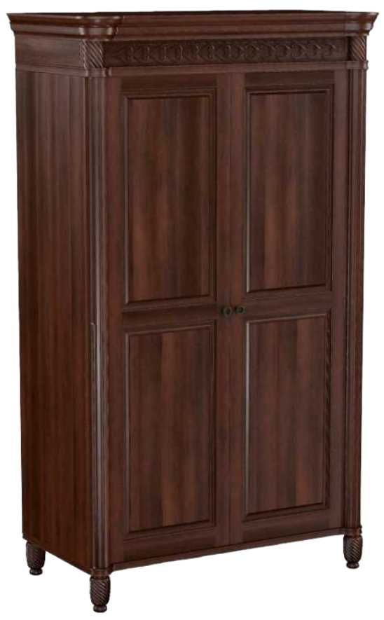 Add a traditional touch to your bedroom with George Washington Architect Armoire from Durham Furniture. Shown in a lodo finish and is crafted with solid cherry wood. Features 2 adjustable shelves and 4 drawers with soft close drawer guides.Read More