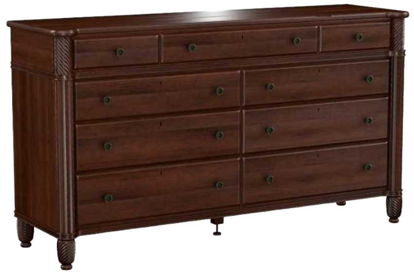 Add a traditional touch to your bedroom with the George Washington Architect Triple Dresser from Durham Furniture. Featuring a vernon finish made from solid wormy maple wood. It is the perfect piece for your bedroom and will add a certain richness to your room’s aesthetics.Read More