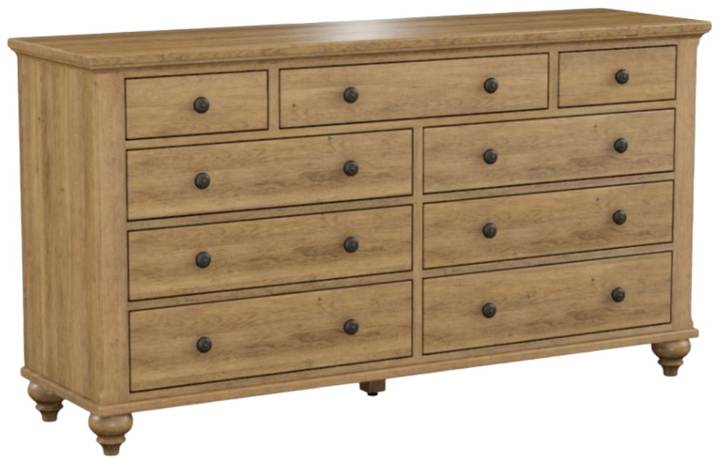 Durham Furniture Customizable Hudson Falls Triple Dresser showcases timeless craftsmanship and generous storage. Built from quality maple wood, it features smooth-gliding drawers and refined panel detailing. Customizable finishes allow you to create a personalized look, making this dresser a beautiful and functional addition to your bedroom ensemble.Read More