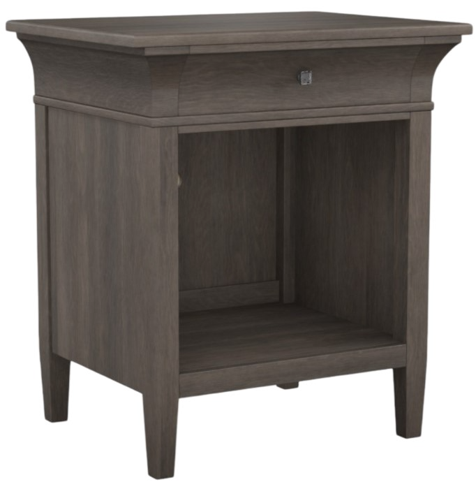 Durham Furniture Customizable Prominence open nightstand offers a balance of elegance and function. Crafted from maple wood, it includes a soft-close drawer, open shelf, and customizable finishes. Thoughtful details and clean lines create a refined bedside companion that enhances comfort, organization, and timeless charm in any bedroom setting.Read More