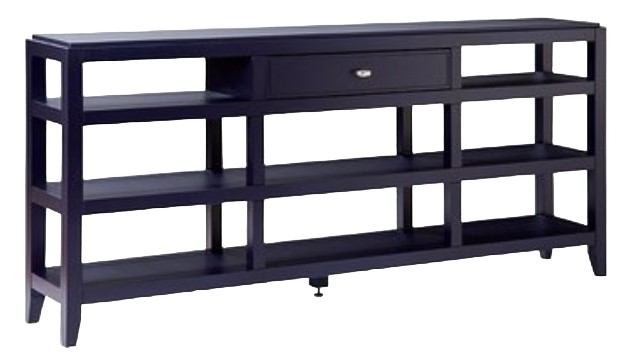 The Solid Accents Open Console Cabinet shown in a navy finish is going to look fantastic in your home! This console cabinet is crafted from solid wormy maple and comes with 1 drawer and 4 open shelves, providing ample amount of room for an organizing bin, home décor, or stack of books.Read More