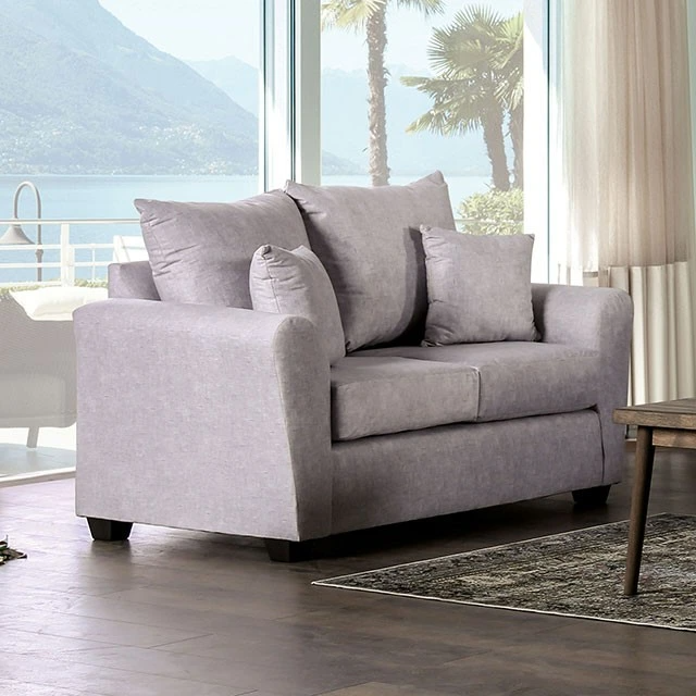 A unique combination of casualness and charm is the bread and butter of this love seat. It features ever-so-slightly flared arms, rounded for maximum comfort. The back consists of loose pillows, which along with the accent pillows, are easily arranged to suit one's preferences.Read More