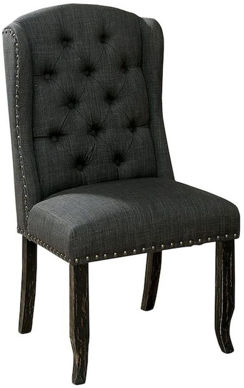 Rustic charm meets upscale design in the form of this stunning collection. Elegant beige linen-like chairs add sophisticated appeal with their wingback sides, button tufting and nailhead trim.Read More