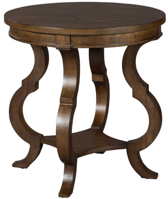 Add style to your home living room area with this end table. This table is shown in a special reserved finish and features a round table top made of Mindi wood. Some assembly is required.Read More