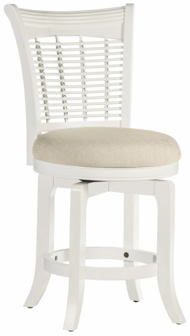 Farmhouse vibes are at the core of the Hillsdale Furniture Bayberry Wicker Swivel Counter Height Stool. This casually classy stool combines white wood and light beige upholstery to evoke the sand and sun-bleached palette of the shore. The rattan-inspired back rest adds to the beachside whimsy of this counter stool.Read More