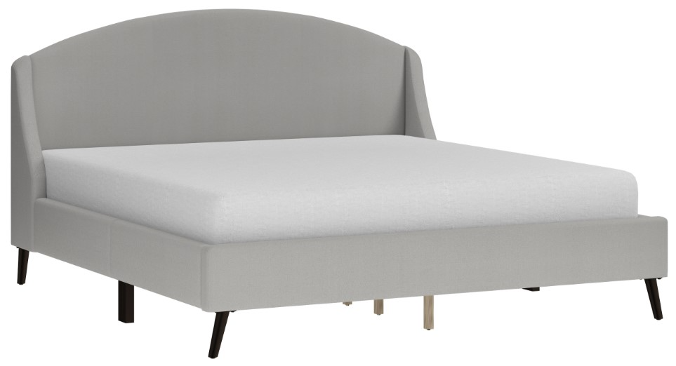 Mid-century modern King frame bed in light gray upholstery