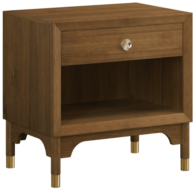 A bed can feel incomplete without a trusty bedside companion. With this mid-century modern nightstand, complete your bedroom's aesthetic with this friendly little addition. Crafted from wood, this walnut nightstand features one drawer with matte gold knobs and is made with English dovetail construction for durability and space.Read More