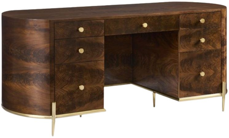 The Hickory White Benson Brass/Brown Desk combines sleek functionality with sophisticated style. Featuring a rich brown finish and striking brass accents, it offers ample workspace and timeless design. Perfect for home offices, it brings elegance and practicality to your daily tasks.Read More