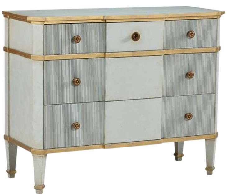 Three soft-close drawers with reeded drawer fronts