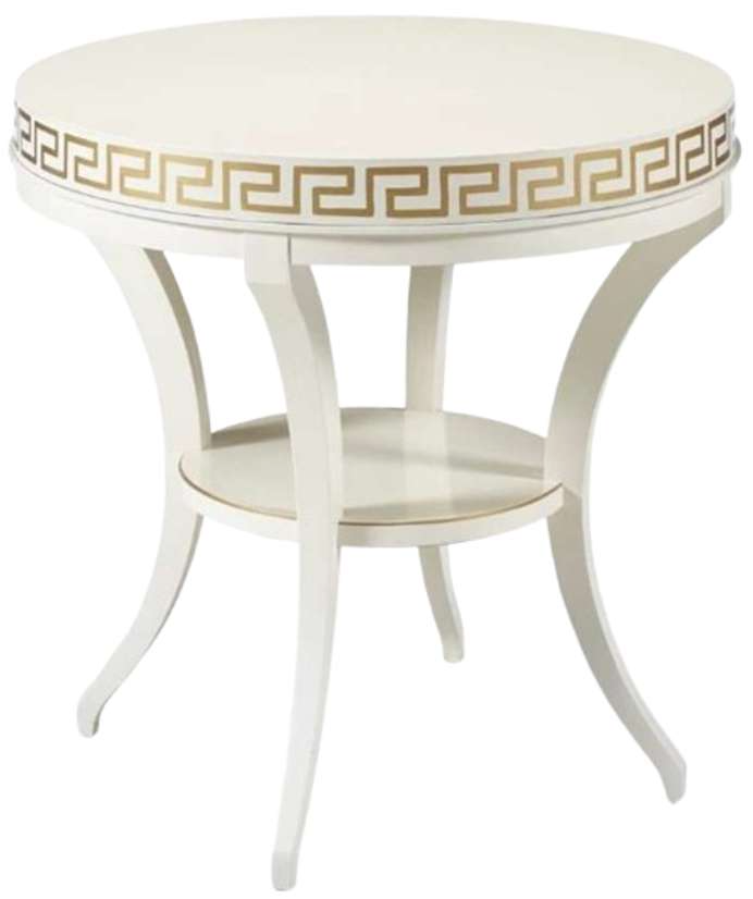 As Shown Finish: -LL Hand Decorated Finish #N5 Savoy White Lacquer w/ Greek Key Border on Apron in Gold, Shelf edge also striped in Gold