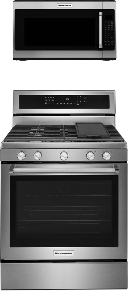 KitchenAid® 2 Piece Kitchen Package-Stainless Steel with Free Standing Gas Range and Over The Range Microwave.Read More