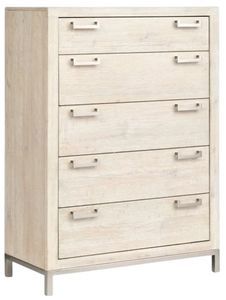 The Magnussen Home® Addison Lane white chest offers five spacious drawers in a clean white finish with brushed nickel hardware. Designed with wire management and a sleek metal base, it blends timeless style with modern function. Ideal for organized bedroom storage with a refined, sophisticated presence.Read More