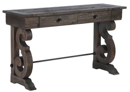 Old World charm abounds in the Bellamy table collection. Gracious S-curved carved bases support overlaid solid pine tops finished in vintage inspired Deep Weathered Pine. Matte black with pewter highlights metal stretchers and hardware create the perfect accent to set the mood for stunning European influenced elegance.Read More