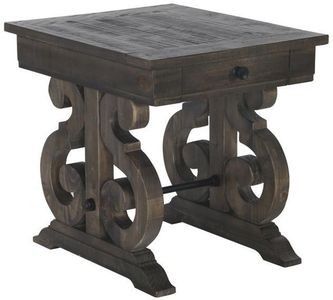 Old World charm abounds in the Bellamy table collection. Gracious S-curved carved bases support overlaid solid pine tops finished in vintage inspired Deep Weathered Pine. Matte black with pewter highlights metal stretchers and hardware create the perfect accent to set the mood for stunning European influenced elegance.Read More