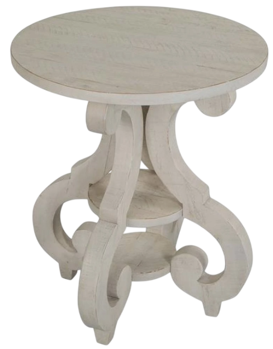 An unforgettable addition to any space, the Bronwyn table collection conveys sophisticated charm. Elegant scrollwork-inspired legs translate a timeless design motif into a stylish aesthetic perfect for today’s homes. Planked tops distinguish Bronwyn’s tabletops and are brought to life in a fresh, clean Alabaster finish accented by hardware in Antique Brass with a Pewter overlay. Shelves and storage drawers make it easy to keep living spaces organized while each table offers its own distinctive personality.