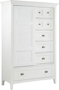 A soft Chalk White finish on Pine veneers and solids creates a relaxed beachy feel in any bedroom with Heron Cove. A high back beaded framed panel bed lends shaker appeal and is available with hidden rails storage. Straight legs support the straight lined chests with raised beaded trim for cottage appeal. Come home to Heron Cove!Read More