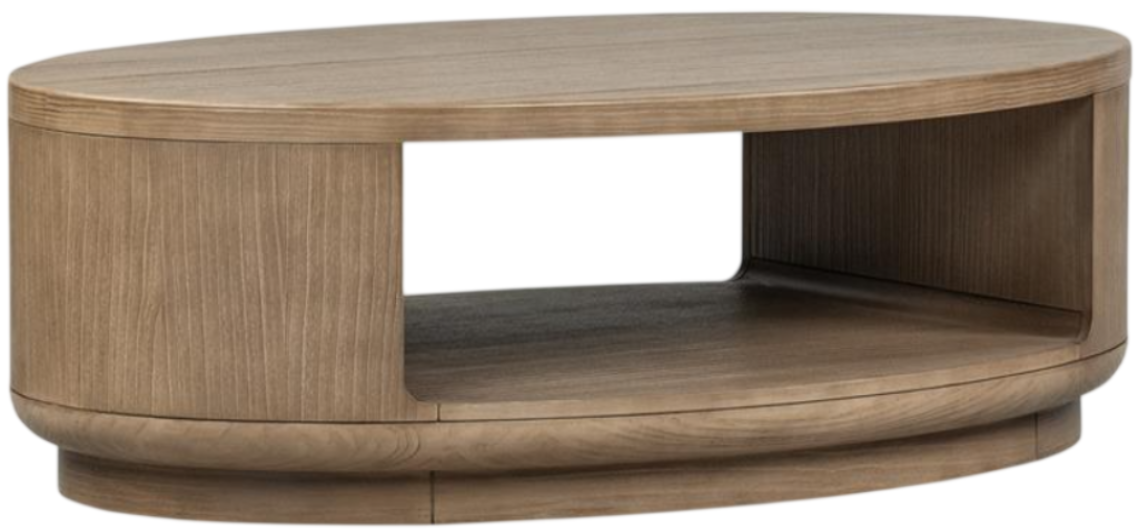 This oval cocktail table combines practicality and style with wood top, fixed bottom shelf, and casters for easy movement. Finished in rich chateau brown with antique nickel hardware, it’s a durable showpiece for any living space.Read More