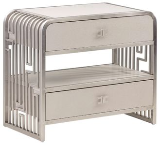Sleek, sculptural, and unapologetically modern, the Roxbury Park 2-Drawer Metal Nightstand brings an urban edge to refined interiors. Its striking geometric frame creates an architectural moment, balanced by soft textures and elevated finishes. Frosted tones and metallic accents work in harmony, delivering contrast without excess.Read More