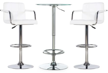 Designed for the modern tastemaker, this 3-piece faux leatherb set delivers a refined fusion of comfort and polish to transform everyday dining into an upscale experience. The clear tempered glass table floats above a chrome pedestal base, outfitted with a smooth height-adjustment lever that adapts to every moment.Read More