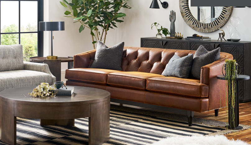Genuine top grain leather provides a soft supple feel, rugged style and will hold up in an active home.