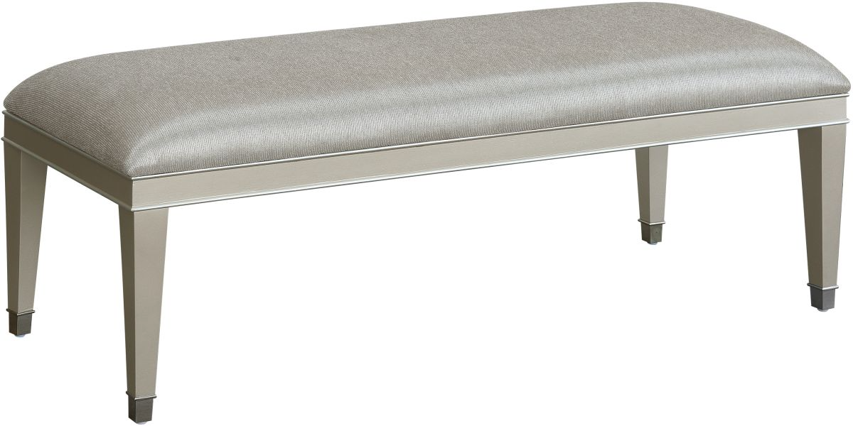 The frame showcases a champagne finish with tapered legs, accented with silver-finished ferrules (metal foot caps). No matter where you place this bench, you'll love it in your home.