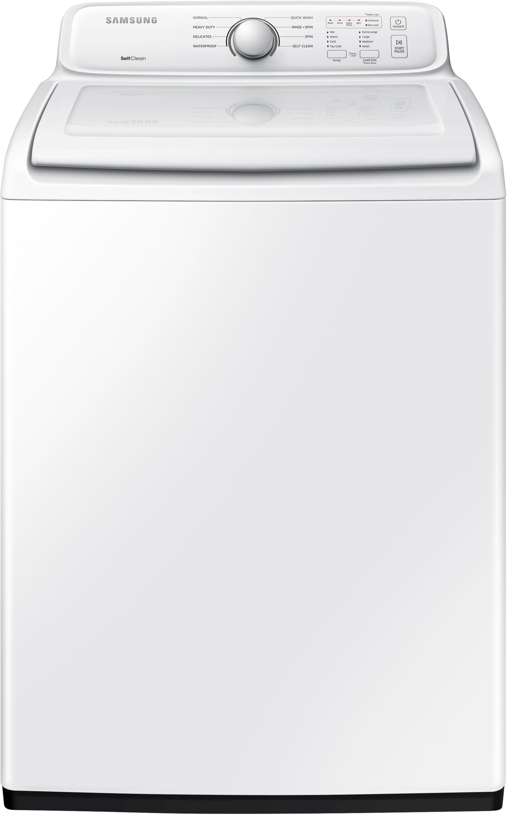 Samsung Top Load Washer-White with 4.0 cu. ft. capacity, self clean and diamond drum interiorRead More
