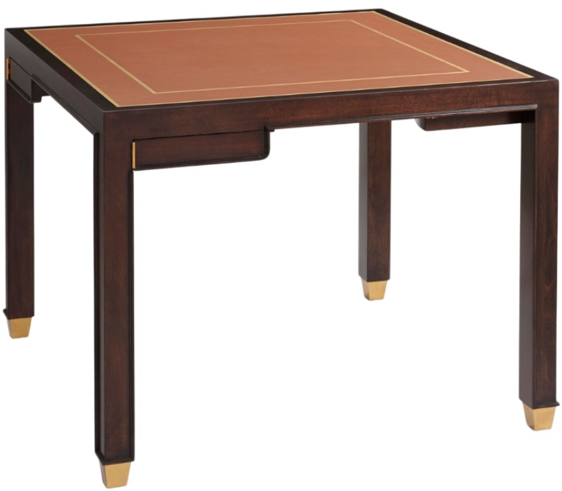 While Antonio’s DNA is all 1930’s Italian, this sleek modern game table translates perfectly in today’s homes. The gilt-tooled leather top is ready for play, with pivoting hinged drawers on the frieze. All supported on bold square legs and set on tapered brass cappings.Read More