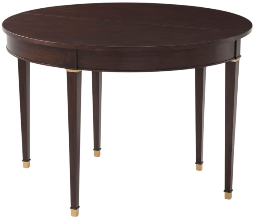With Neoclassic-inspired ease, the Lynne living room table does double duty as a demilune console table and a tea table. The versatile molded-edge tabletop folds over and gate-legs open to complete the transformation. Square tapered legs with brass capitals and cappings.Read More