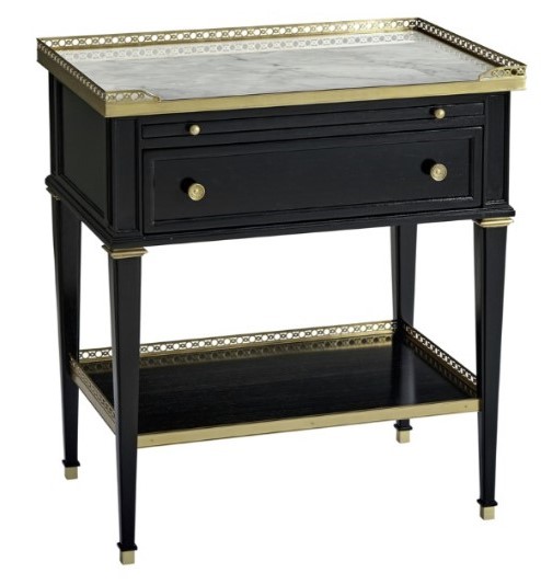 This French neoclassical nightstand is based on an antique in Alexa Hampton’s own home. Cherished details abound: pierced brass gallery with Bianco Carrara marble top, pullout tray, single drawer with cast brass handles, tapered legs with brass capitals and feet, and pierced brass gallery lower shelf. Perfect as an end table too!Read More