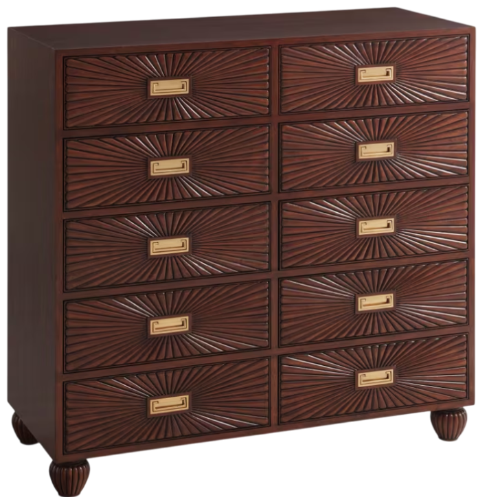 Alexa Hampton’s Scott Chest of Drawers radiates charm with ten starburst-relief carved drawers. Campaign drawer handles recall the design’s Anglo-Indian inspiration. Set on turned bun feet. Crafted in Mahogany and Mahogany veneers.Read More
