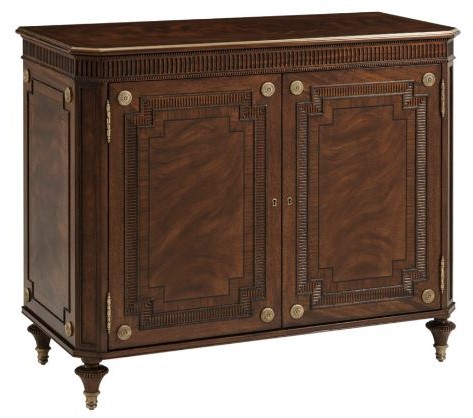 This unique two door decorative chest reveals an elegantly simplistic design with bold artisan-carved fluted detailing on the body, apron and doors that was inspired by a set of doors leading into the Wootton Hall within the Althorp House.Read More