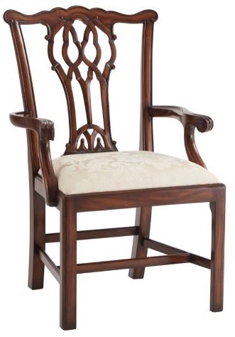A mahogany armchair after Chippendale, serpentine toprail, pierced vase splat, upholstered drop in seat, square chamfered legs and stretchers. The original George III. Add this chair to your living room decor and elevate the look of your space.Read More