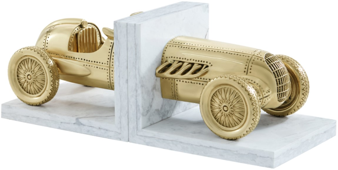 This polished brass bookends feature a dynamic racer car-inspired design, capturing the sleek, aerodynamic lines of a luxury automobile. The high-gloss brass finish enhances the sophisticated aesthetic, making these bookends a striking addition to any shelf, blending automotive elegance with functional décor.Read More