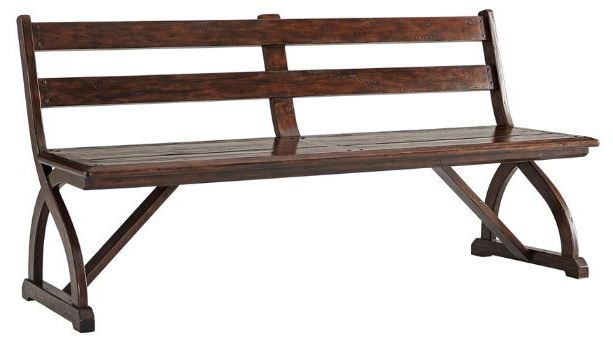 This antiqued mahogany monastery bench, Features a slatted ladder back above a planked seat with a moulded edge, on wishbone supports with sleigh bases and stretcher supports. Inspired by a 17th century original.Read More