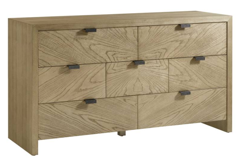 Sleek seven-drawer bedroom dresser made of figured cathedral ash available in Dune or Earth with textured metal pulls in our Ember finish and soft close drawers. Perfect for your home.Read More