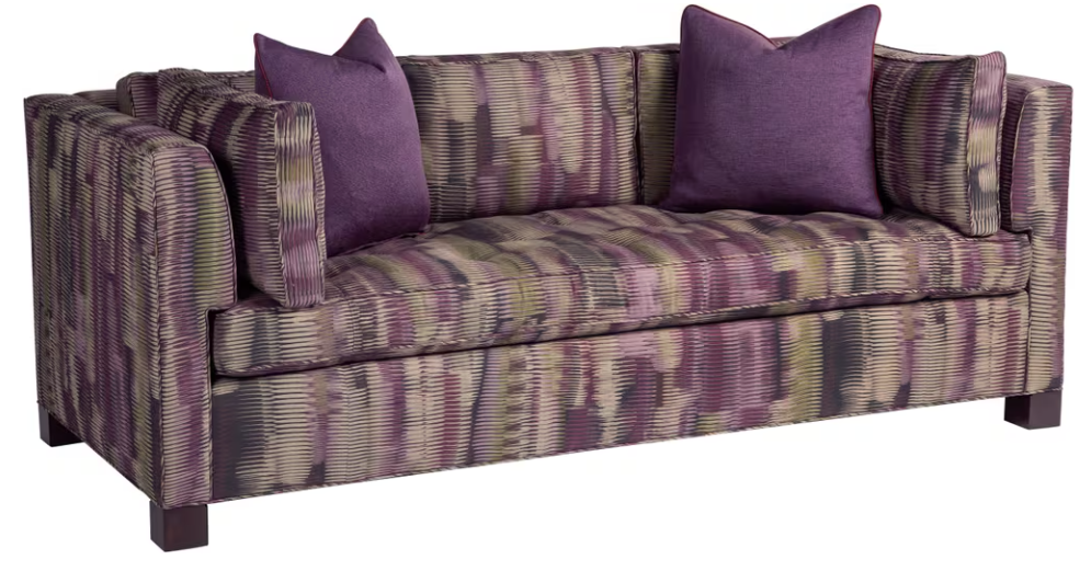 A classic form in modern upholstery, the Albert sofa can go anywhere and be anything, with your creative fabric selection. The plush bench cushion is held in place with locking apostrophe arms. Three loose boxed cushions form the back, with two throw pillows flanking the high tuxedo-arms.Read More