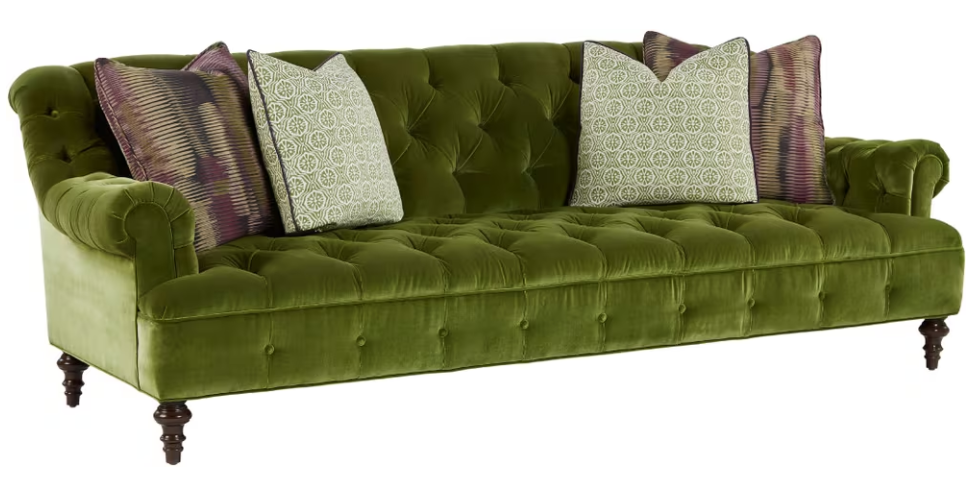 A lavish sofa with all over tufting, the Wingate Sofa, is a classic silhouette with a masculine feel. Plush tight tufted seat and back, soft scrolled arms, and turned wood feet impart a handsome elegance for any room.Read More