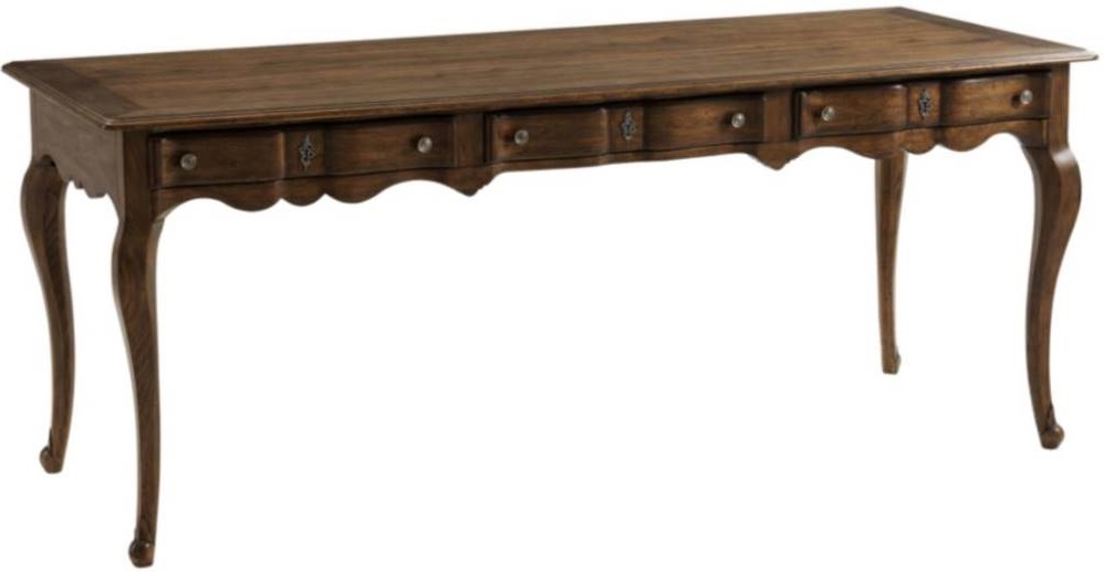 Crafted by Theodore Alexander, this customizable writing table features a rich wood finish, spacious rectangular top, and elegant tapered legs. The piece includes functional drawers for storage and showcases fine craftsmanship, making it a sophisticated addition to any study or workspace.Read More