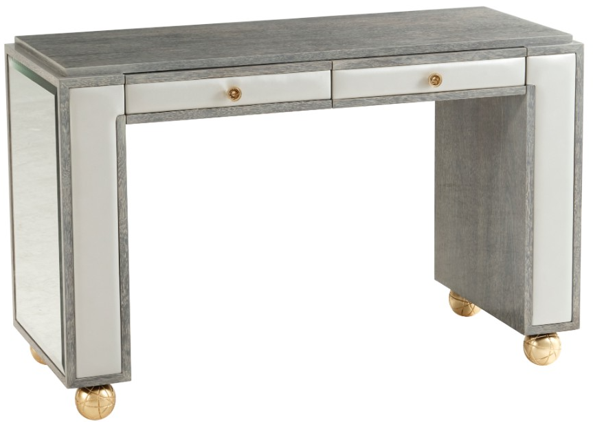 Crafted with exceptional attention to detail, this Theodore Alexander vanity table offers elegance and function. It features spacious drawers and a smooth surface, ideal for daily routines. Built with quality materials, it combines durability and sophistication to complement any refined space.Read More