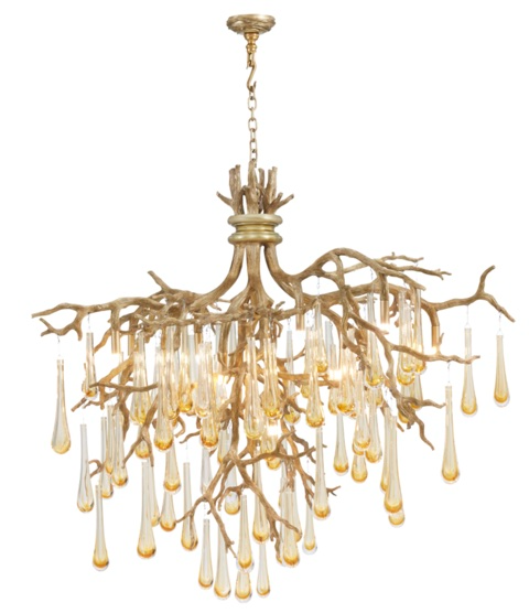LLoret Media 12 Light chandelier in brass finish with glass droplets