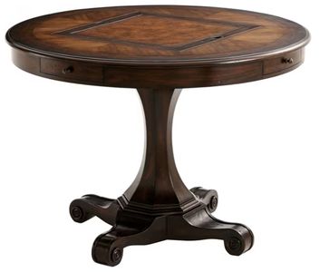 The Theodore Alexander Marst Hill grandmaster game table features a dark brown finish with intricate parquetry and a reversible leather and chess inlay. Its elegant octagonal base and versatile design make it a stylish and functional centerpiece for game rooms or living spaces.Read More